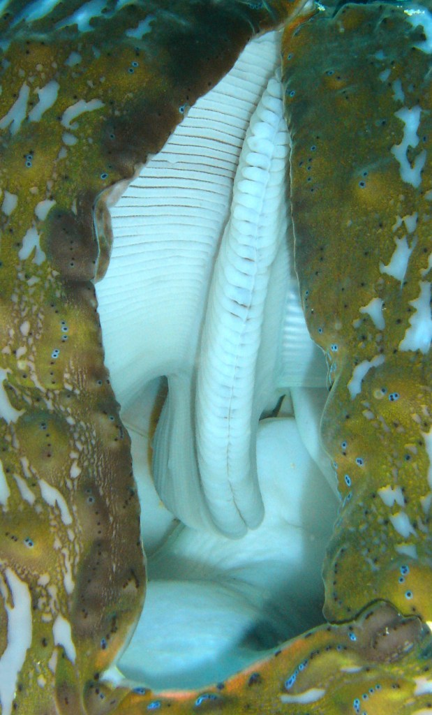 Regardless, when looking at tridacnines’ need to filter-feed (or not to) from another angle, Mangum and Johansen (1982) and Klumpp et al. (1992) also studied the amount of water some tridacnines pumped through their mantle cavity and over their gills, relative to their size. What was discovered is that gigas pumps though relatively huge volumes of water compared to other species. For example, a gigas may pump an incredible 14 times more water through its mantle cavity per hour than a squamosa of about the same size. So, these researchers came to the conclusion that gigas must be pumping so much more in order to get more food from the water, as more water moving through equals more particulate matter exposed to the filtering gills. Conversely, it would seem that squamosa needed only to move enough water through to get and to get rid of oxygen and carbon dioxide and thus wasn’t particularly reliant on filter-feeding.